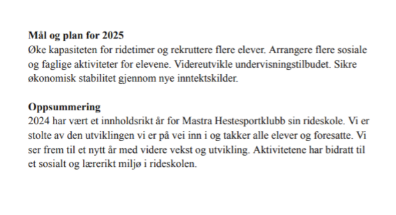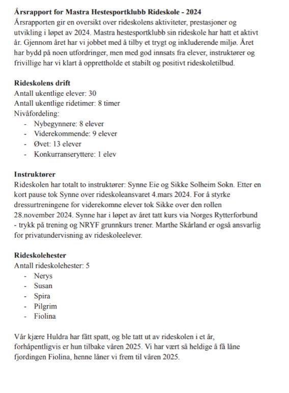 Hilsen alle oss i styret for Mastra Hestesportklubb 😊